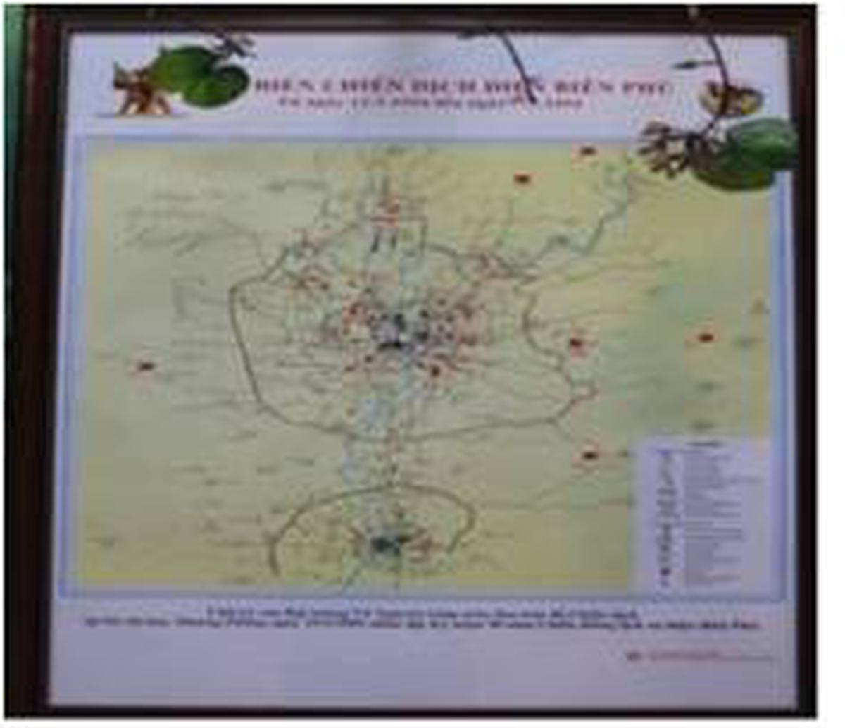 Tấm bản đồ được phục dựng trên cơ sở bản đồ bố phòng Điện Biên Phủ, tài liệu quý hiếm thu thập được từ chính lòng địch. Bản đồ tỷ lệ 1/100.000 khi đó chỉ phác họa sơ sài dòng sông Nậm Rốm từ Bắc xuống Nam, thiếu nhiều thông tin.