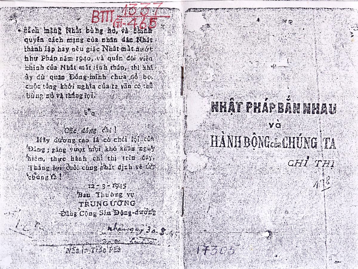 Ngày 12/3/1945 Ban Thường vụ Trung ương Đảng ra Chỉ thị "Nhật - Pháp bắn nhau và hành động của chúng ta". Chỉ thị này là kim chỉ nam cho mọi hành động của Đảng, của mặt trận Việt Minh, của các lực lượng vũ trang cách mạng từ tháng 3 đến tháng 8/1945.