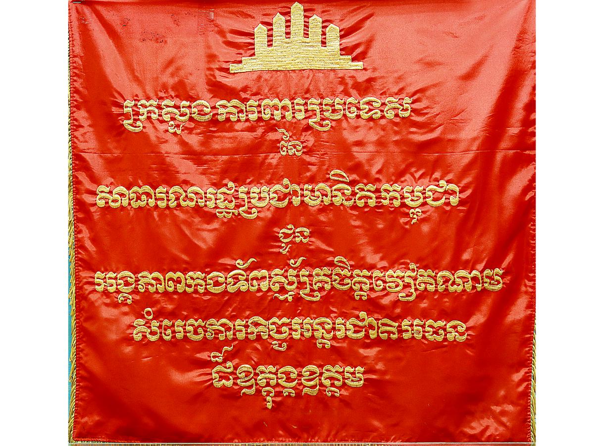 Cờ có nội dung: Bộ Quốc phòng tặng Đơn vị quân tình nguyện Việt Nam hoàn thành nhiệm vụ Quốc tế vô sản vĩ đại.