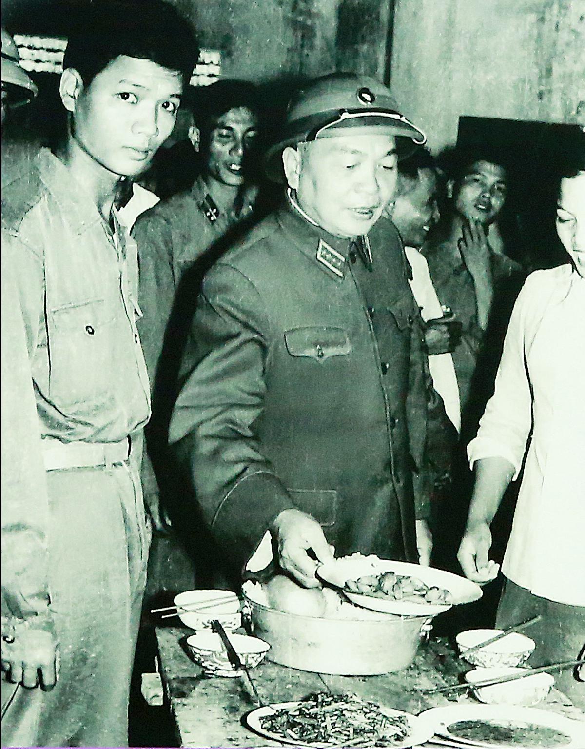 Chủ tịch nước Việt Nam Dân chủ Cộng hòa Tôn Đức Thắng và Đại tướng Võ Nguyên Giáp, Bộ trưởng Bộ Quốc phòng thăm Bộ đội Thông tin liên lạc, năm 1972
