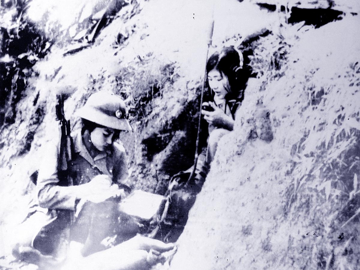 Đồng chí Đặng Thị Tập và đồng chí Nguyễn Thị Thuận, chiến sĩ thông tin VTĐ Trung đoàn 192 giữ vững thông tin liên lạc phục vụ chiến đấu tại tỉnh Hoàng Liên Sơn, năm 1979