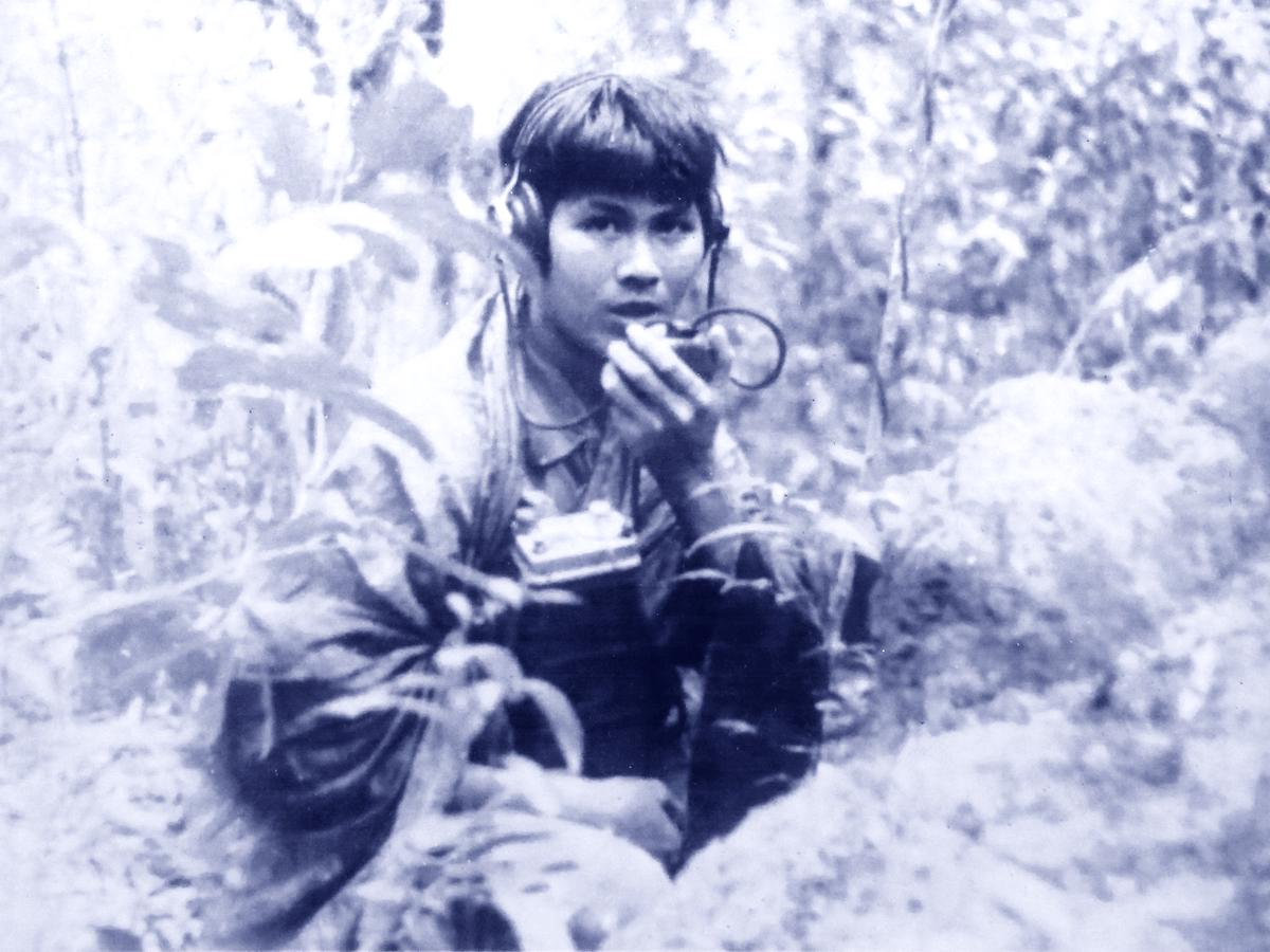 Đồng chí Nguyễn Thanh Sơn, chiến sĩ Thông tin K4-V5, bảo đảm TTLL phục vụ đơn vị chiến đấu, năm 1969.