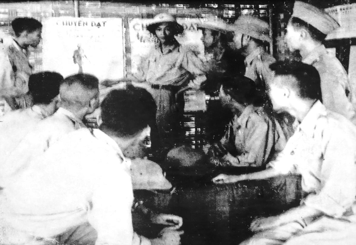 Đồng chí Trần Sơn, Tiểu đoàn trưởng cùng cán bộ Tiểu đoàn 36 liên lạc đặc biệt, triển khai công tác bảo đảm thông tin liên lạc cho Chiến dịch Biên Giới, tháng 4/1950