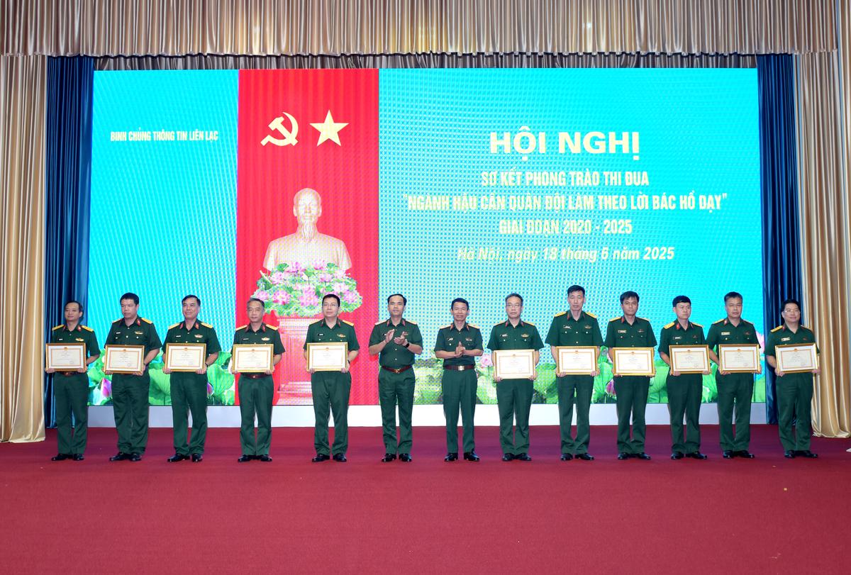 Thiếu tướng Vũ Viết Hoàng, Tư lệnh Binh chủng, Thiếu tướng Nguyễn Văn Trị, Chính ủy Binh chủng trao thưởng cho các tập thể, cá nhân có thành tích xuất sắc trong thực hiện phong trào thi đua
